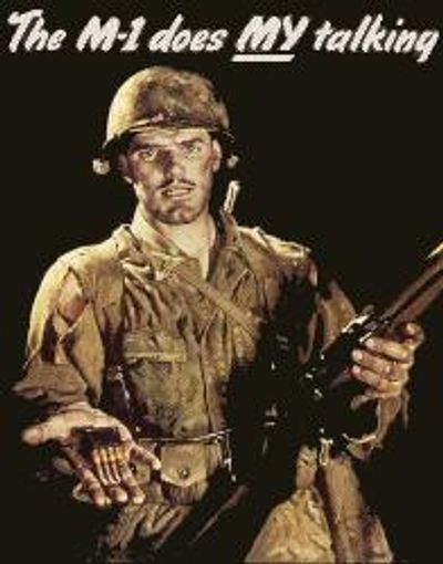 Great propaganda...the M-1 still is an incredible weapon. Every Vet that I have ever spoken with has expressed great confidence in and appreciation for the M-1. I understand that it was very reliable and accurate. My father told me, and I have also heard other Vets say, that if the M-1 action froze in the night or rain, the men would relieve themselves on the action to dethaw it.
